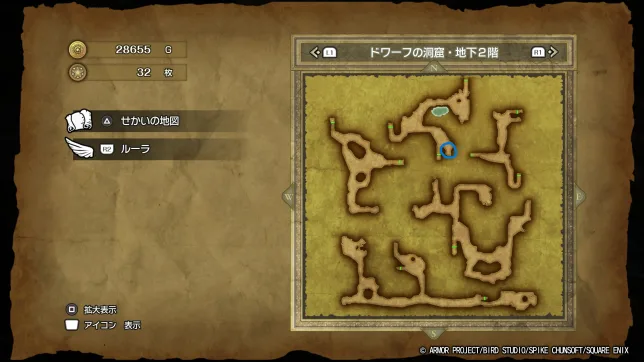 | 岩山の洞窟地下2階 宝箱 | ちからための巻物 |