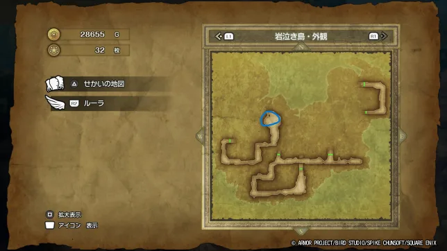 | 岩泣き島外観 宝箱 | ヒャダインの巻物 |