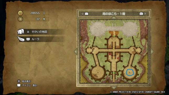 | 雨のほこら 宝箱 | ヒャドの巻物 |