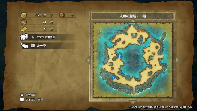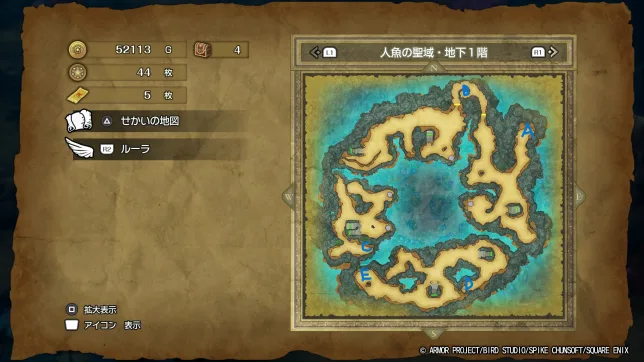 「人魚の聖域」地下1階の宝の位置と中身(入手アイテム)の詳細は以下の通り。