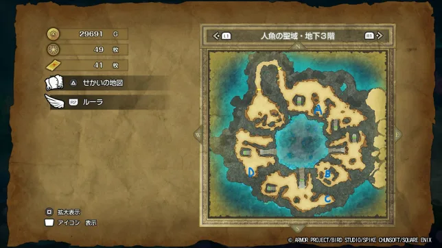 「人魚の聖域」地下3階の宝の位置と中身(入手アイテム)の詳細は以下の通り。