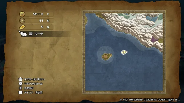 ルプナガ(船入手)→ベラヌール→サマルトリア→ベラヌール→世界樹の森→ベラヌール→ラダトーム→竜王の城→雨のほこら→大灯台→ペルポイ→炎のほこら→ザハン→人魚の岩場→ザハン→舟守のほこら→人魚の岩場→デルコンダル→雨のほこら→人魚の岩場→妖精の城→アルメハ→人魚の聖域