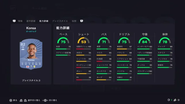 価格の割に能力は悪くなく、プレイスタイル「ジョッキー」「予測」とCBとしては欲しい2つが揃っています。