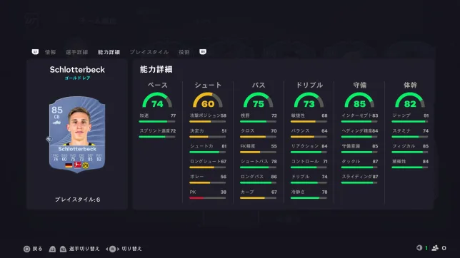 プレイスタイルが豊富なのが魅力で、スピードもケミスタで上げることを考えれば合格点。守備の能力値の高いのでブンデスリーガスカッドの方には特におすすめです。