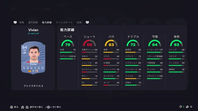 個人的には超コスパ選手だと思います。プレイスタイルはしっかりと「ジョッキー」と「予測」を持っていて、プレミアリーグ所属なのでケミ合わせにも困りません。